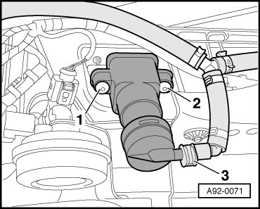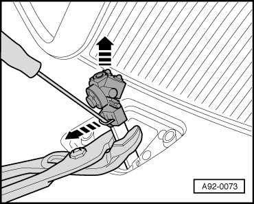 - Remove washer fluid hose - 3 - (press release button).