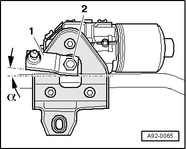 - Align crank - 1 - to wiper frame and tighten nut - 2 - to 18 Nm.