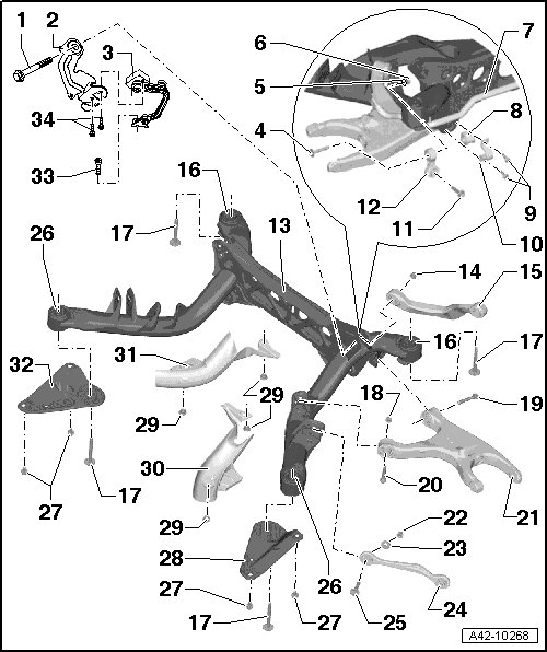 • Depending on the model there are different versions, either a conventional and a hydraulic bonded rubber bushing is installed. For the correct allocation, refer to the Parts Catalog