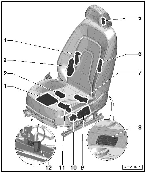 • Front passenger side: front passenger backrest adjustment motor (V46)