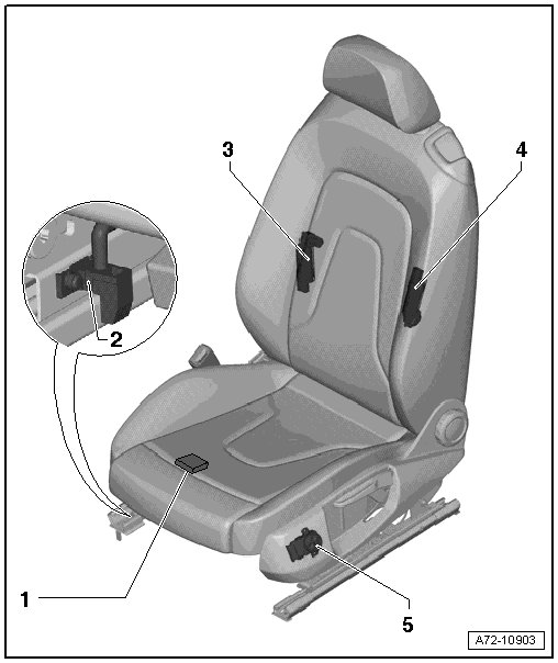 • Versions with seat occupied sensor for passenger airbag deactivation, removing and installing refer to => [ Seat Position Sensor, with Seat Occupied Sensor for Passenger Airbag Deactivation ] Seat Position Sensor, With Seat Occupied Sensor For Passenger Airbag Deactivation
