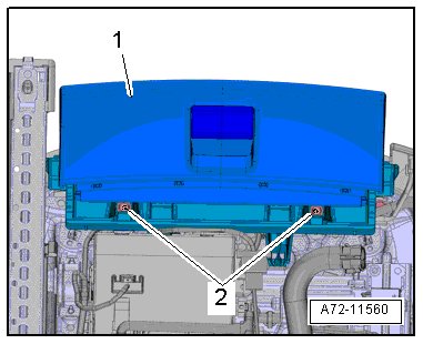 - Open the storage compartment - 1 - and remove the bolts - 2 -.