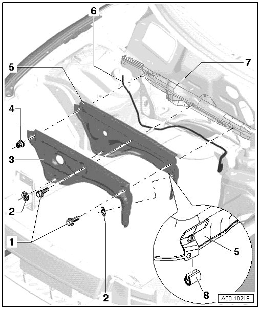 • Slide the edge protection onto the tab on the plenum chamber bulkhead.