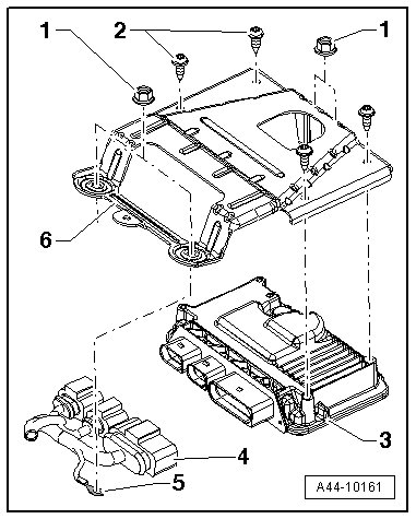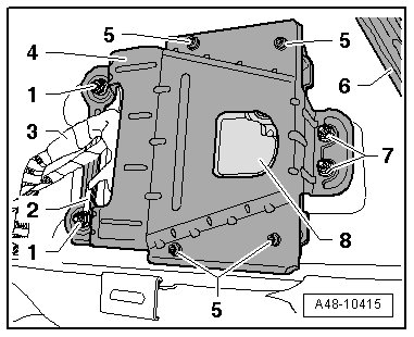 - Remove the bolts - 5 - from the control module - 8 - and remove the bracket - 4 -.