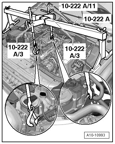 - Engage the (10 - 222 A /11) to the engine lifting eyes.