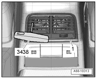 - Alternating between the sides, carefully remove the vent - 1 - from the installation opening using the (3438).