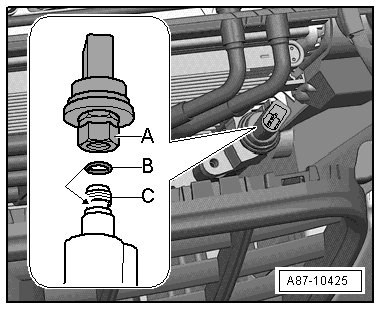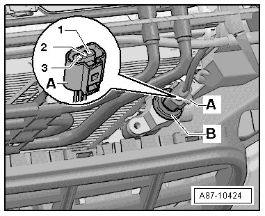 - Disconnect the A/C pressure/temperature sensor - A - from the condenser connector - C -.