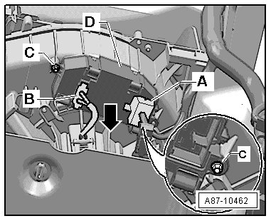 - Remove the Fresh Air Blower Control Module - D - from the air intake housing.
