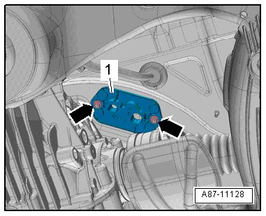 - Remove the nuts - arrows - and remove the pass-through for the refrigerant lines - 1 -.