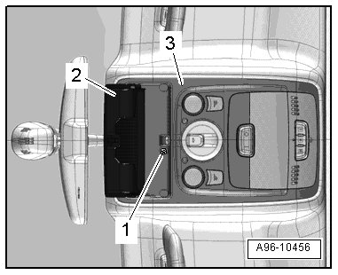 - Tip the interior/reading lamp - 3 - down and remove it from the roof trim.