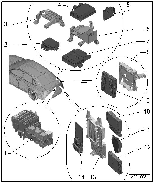 • Removing and installing, refer to => [ Comfort System Central Control Module (J393) ] Comfort System Central Control Module (J393).
