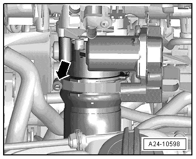 - Open the clamp on the air guide hose - arrow - and remove it from the throttle valve control module.
