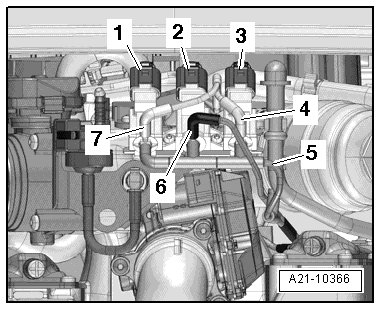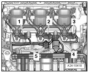 1 - To cylinder bank 2 fuel injectors and to Fuel Pressure Sensor -G247-
