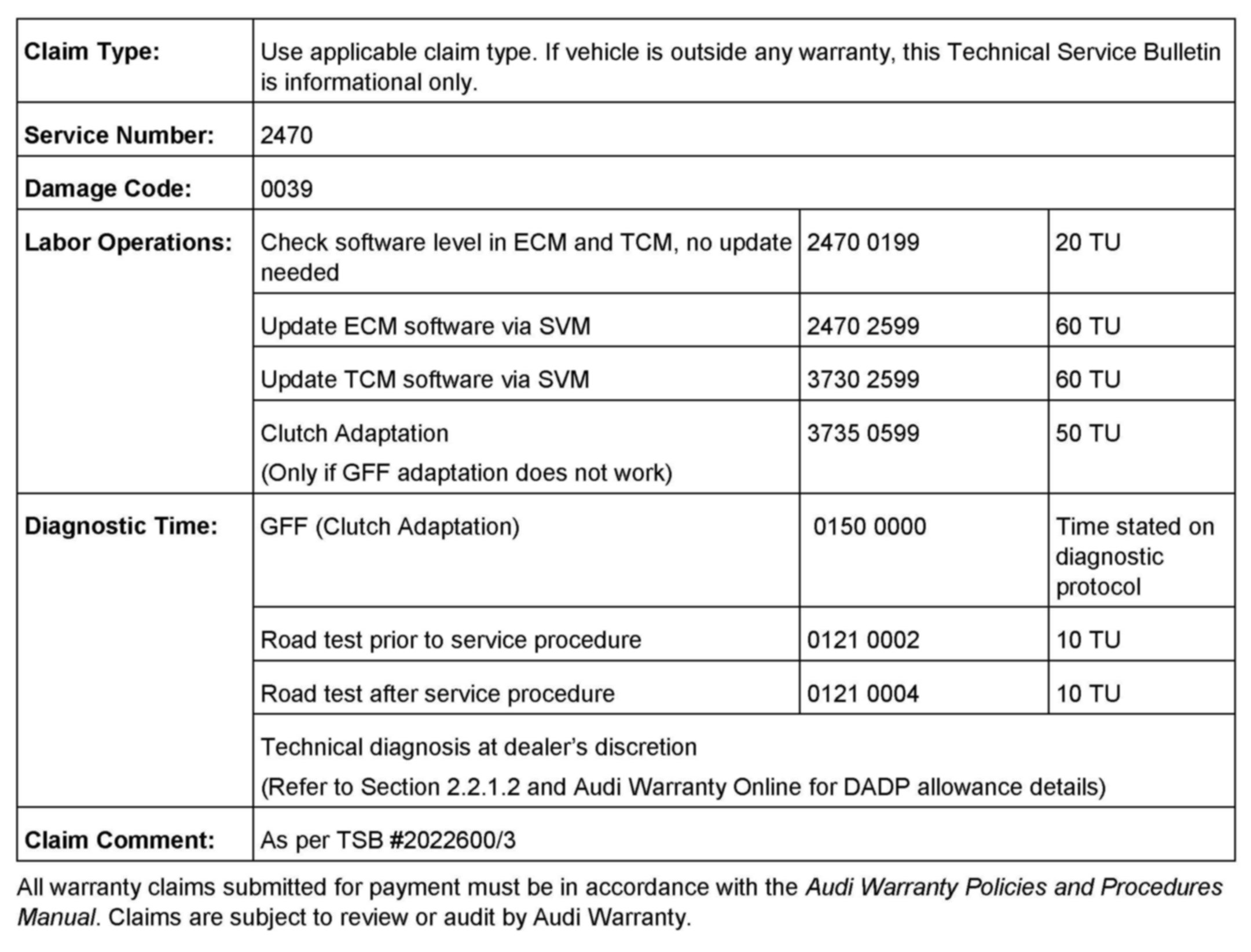 0AW Self-Diagnosis Clutch Adaptation Instructions