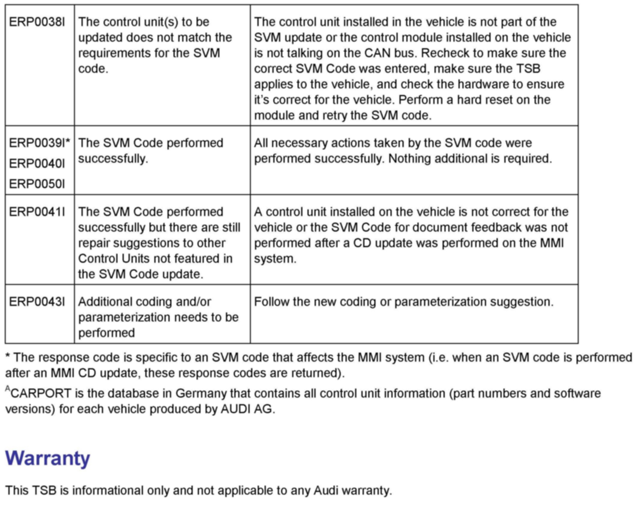 2. Update the ECM (J623) using the SVM action code as listed in the table above if necessary.