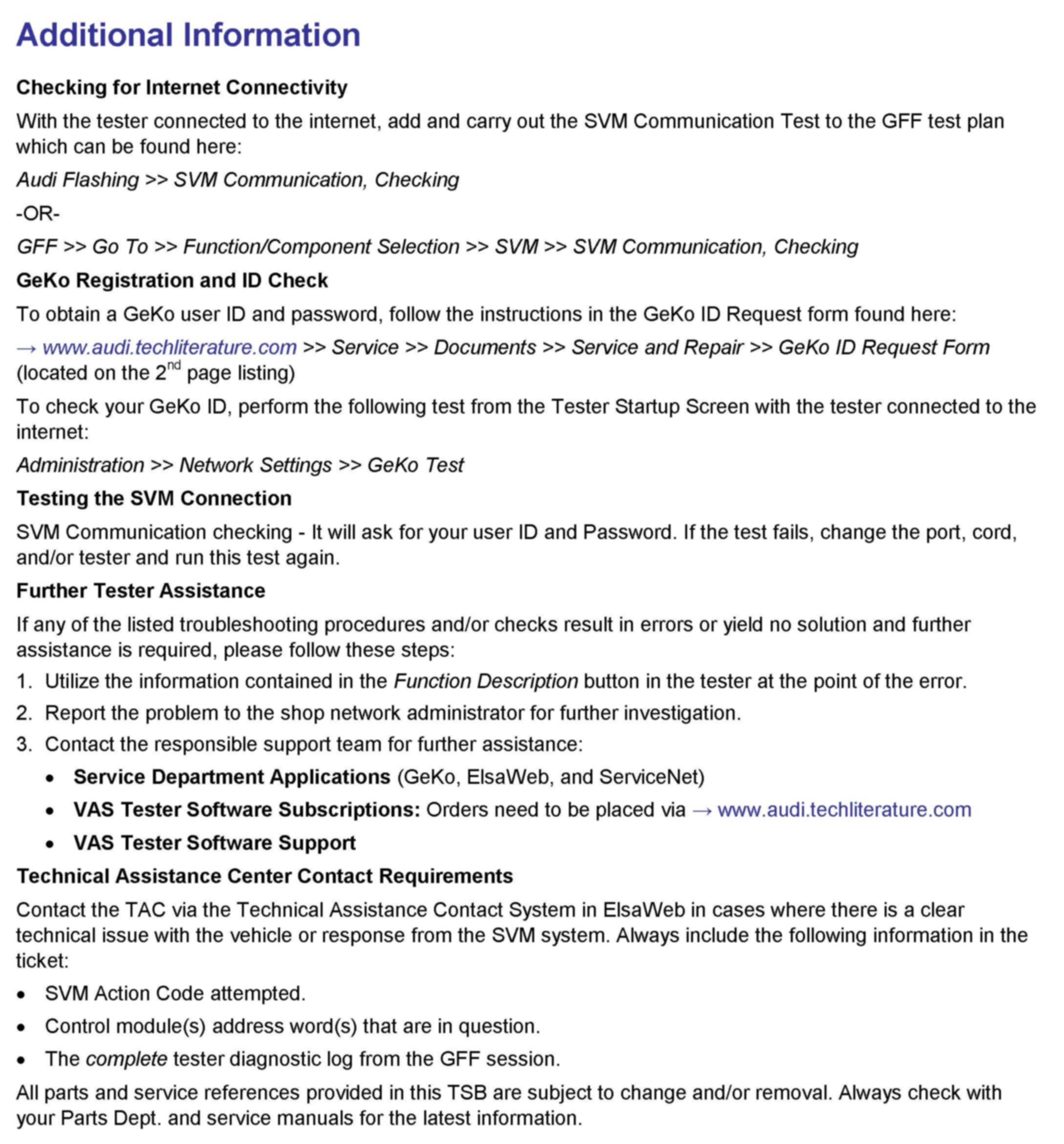1. Follow all instructions in the attached TSB 2011732 00 Software Version Management (SVM), operating instructions.