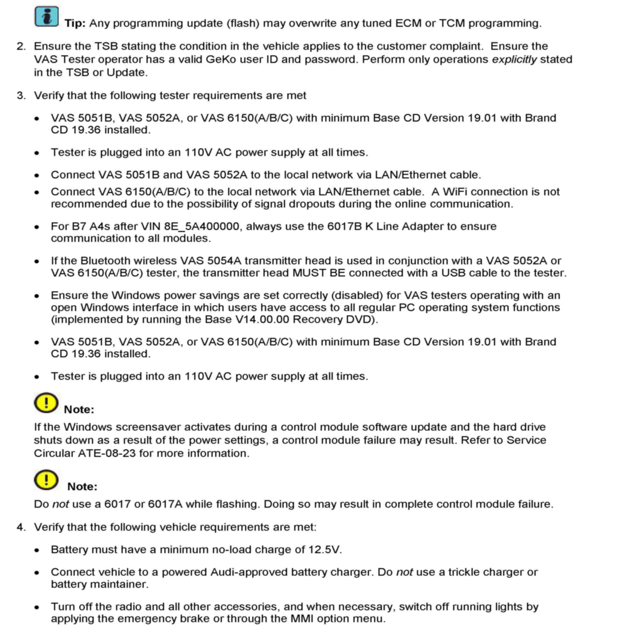 2. Update the ECM (J623) using the SVM action code as listed in the table above if necessary.
