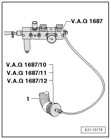 - Connect the (V.A.G 1687) to compressed air - 1 - with a commercially available adapter piece.