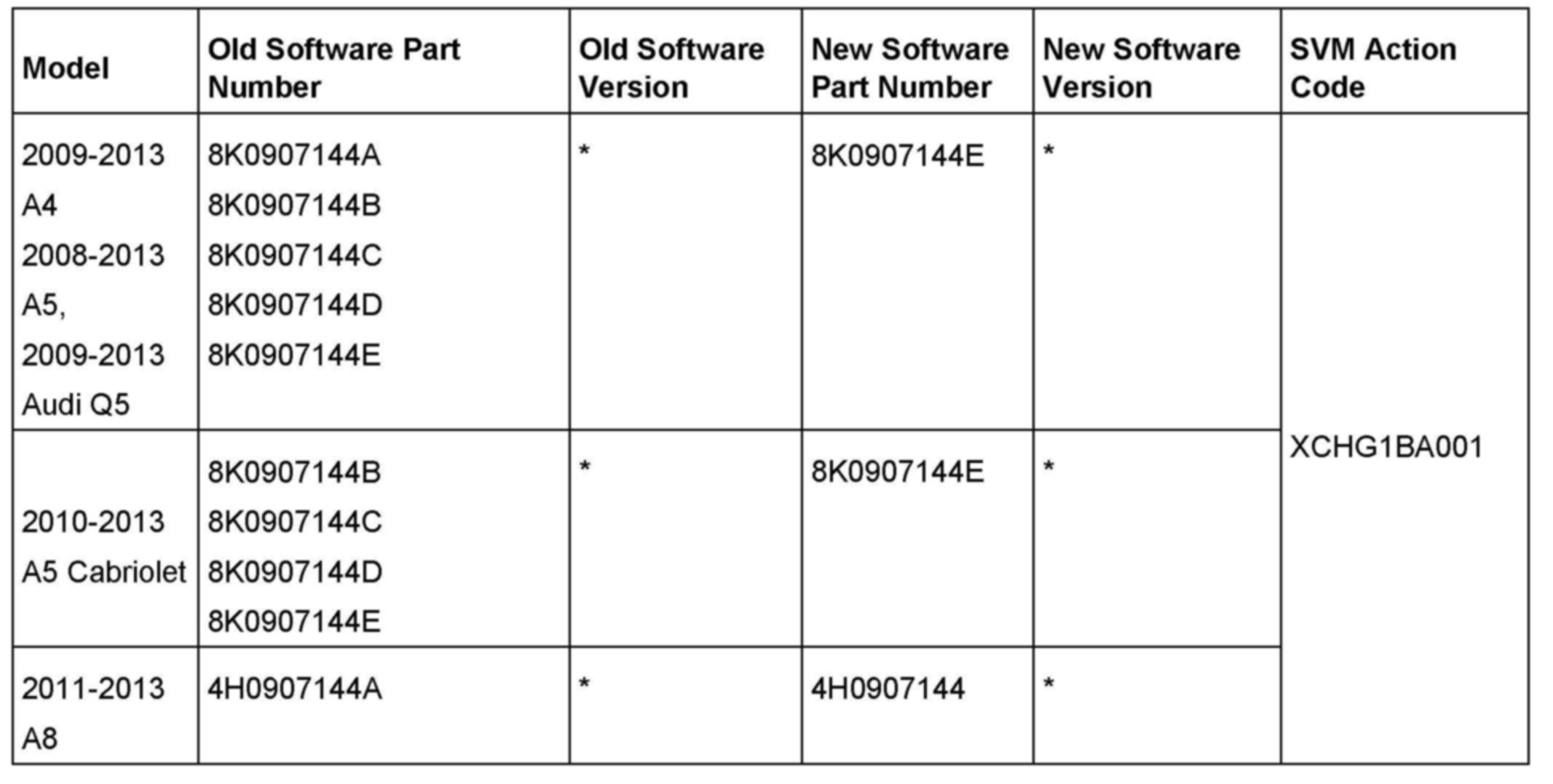 When replacing the dynamic steering control units (J792), online coding and parameterization must first be attempted using an SVM spec/actual comparison. If the SVM spec/actual returns a response of "Check Hardware", then it is possible one of the SVM codes listed above is required to code and parameterize the new replacement control unit.