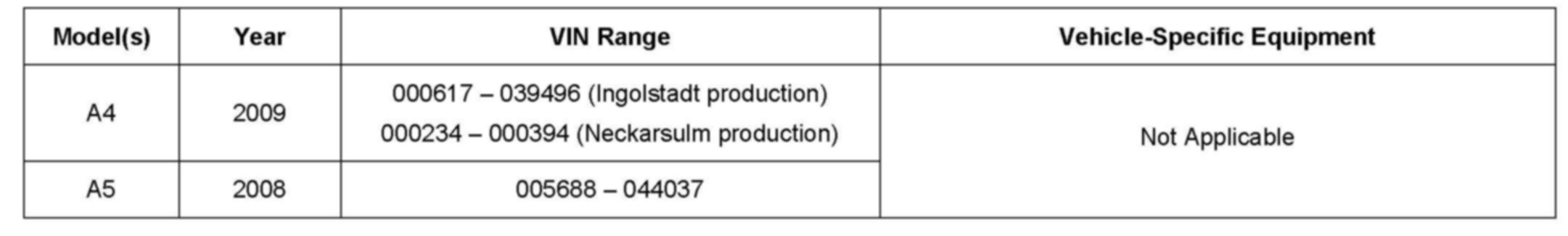 Only the battery monitor control unit is programmed as part of this campaign. Do not perform any updates of other control units. If you receive a message requesting you to check control units, contact Audi of America via TACS. In your ticket, please include the VIN of the vehicle, the name of a contact person with telephone number and the VAS scan tool message you have received from the Audi SVM.