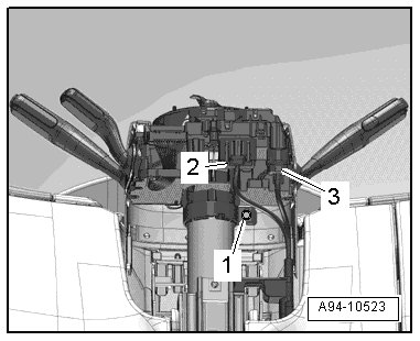 • The steering column switch module consists of the coil connector with slip ring, steering angle sensor (G85) , steering column switch (turn signal indicator switch, wiper switch, cruise control switch) and steering column electronic systems control module (J527).