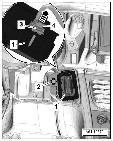 - Remove the access/start authorization switch - 1 - forward toward the driver footwell and out of the instrument panel.