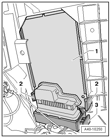 - Press the clips - 2 - to the side and remove the electronically controlled damping control module - 1 -.