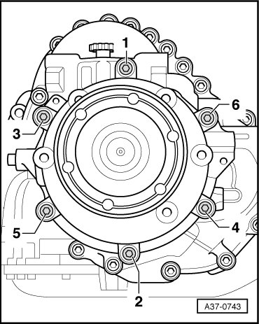 - 2. Tighten the bolts to 8 Nm in the following sequence: - 1 to 6 -.