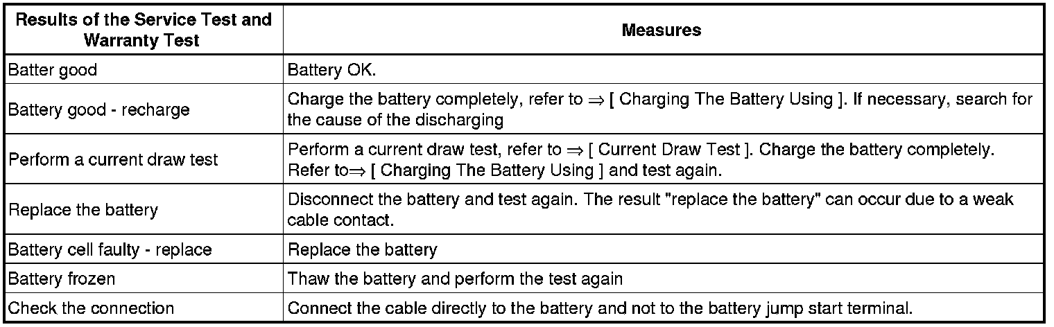 • When performing the battery test with the (VAS 6161) , the battery ground wire must not be disconnected.