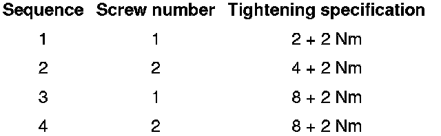 - Install the new locking magnet as shown in the following table and secure it with both new bolts - 1 and 2 - (use the supplied tool).