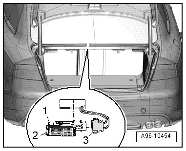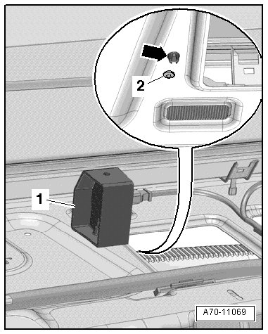 - Using a flat-head screwdriver, press the retaining tab - 1 - and pry out the luggage compartment light - 2 -.