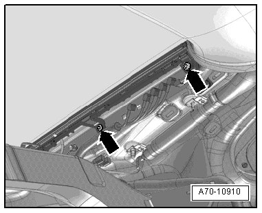- Remove the bolts - arrows - on the sun shade guide strip.