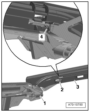 - Clip the guide strip - 3 - at both retaining hooks - 2 - and - 4 - on the front and rear with the connecting piece - 1 -.