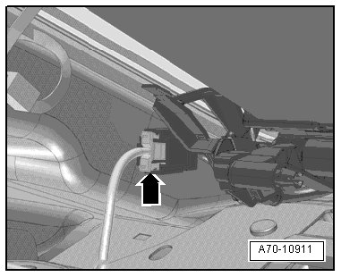 - Disconnect the electrical connector - arrow - on the sun shade.