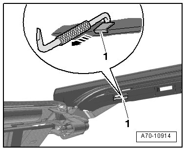 - To ensure the retaining hooks - 1 - are seated securely, pull them forward until they engage completely using an offset screwdriver - arrow -.