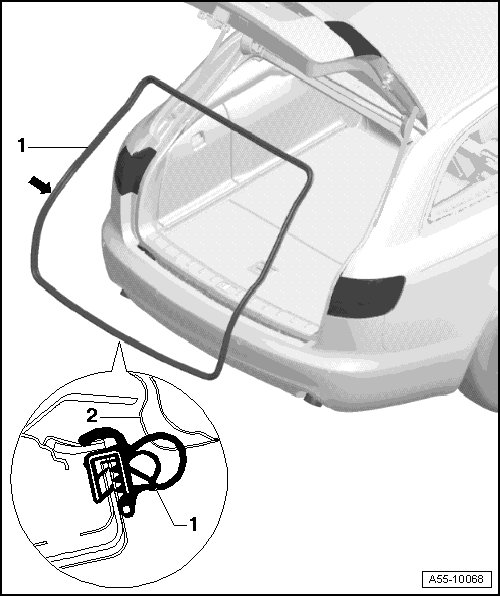 - When installing, vulcanized seal butt joint - arrow - must lie in upper edge of rear lid.