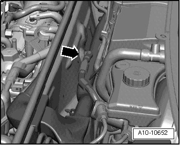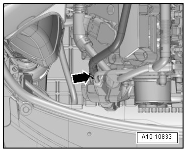 - Remove the left front coolant hose in the engine compartment; to do so, lift the clips - arrows -.