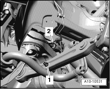 - Remove the left and right bolts - 2 - and remove the stabilizer bar.