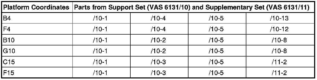 - Equip the (VAS 6131 A) with the support set (VAS 6131/10) and the (VAS 6131/11) as follows: