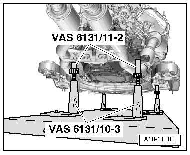 - Remove the (VAS 6131 A) with the engine/transmission subassembly under vehicle.