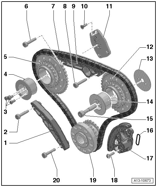 • Tightening specifications => [ (Item 13) Bolts ] Camshaft Timing Chains Overview