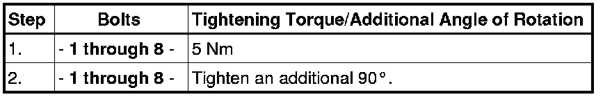Replace bolts which have been tightened to an additional torque.