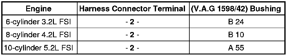 - Connect (V.A.G 1598/42) to wiring harness with (V.A.G 1598/39-1) or (V.A.G 1598/39-2). Clamp test box ground (GND) clip to battery negative terminal. The procedure will indicate whether the engine control module is to be connected to the test box or not.