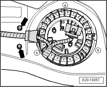 - Remove fuel filler cap - arrow - from fuel filler tube.