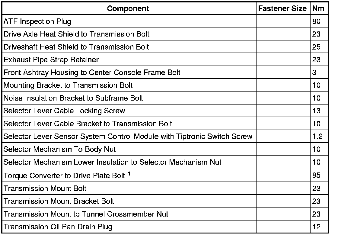 Transmission Bolt Tightening Sequence and Specifications, 6 Cylinder Engines