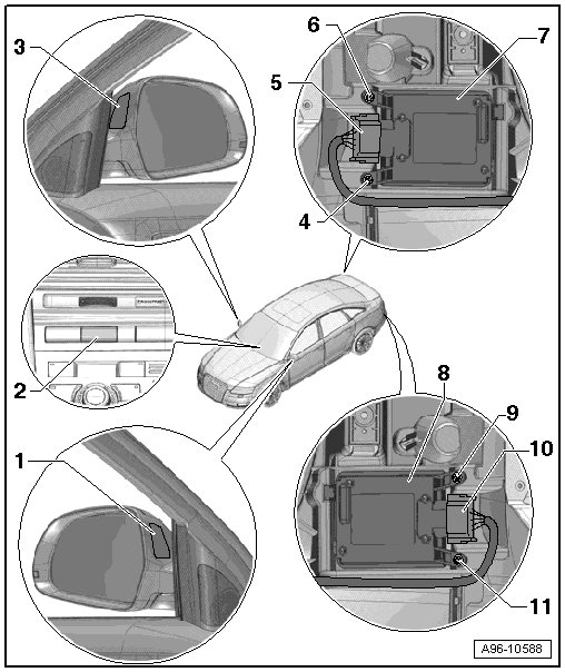 • Removing and installing => [ Lane Change Assistance Control Modules ] Lane Change Assistance Control Modules