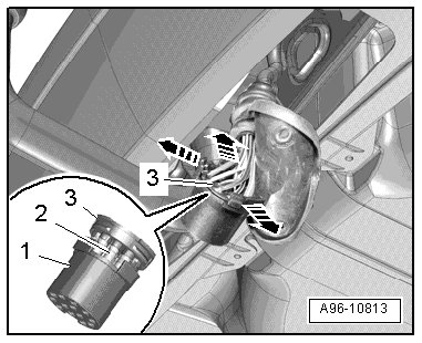 - Release the retaining clips - arrows - and remove the retainer - 1 - from the multiple connector - 3 -.