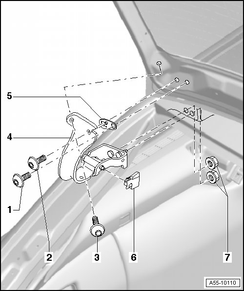 • If both lid hinges are replaced, these must first be installed on lid side, then bring lid with hinges flush to vehicle and tighten nuts - 7 - to 21 Nm.