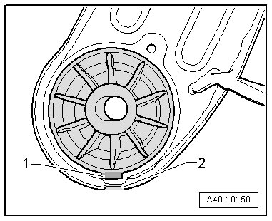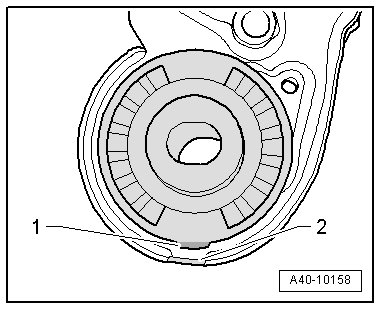• The tab - 1 - on the rear bearing must line up with the opening - 2 -.