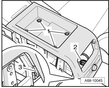 - Disengage left and right of rear center console, push catches - 3 - and lift rear center console up and out.